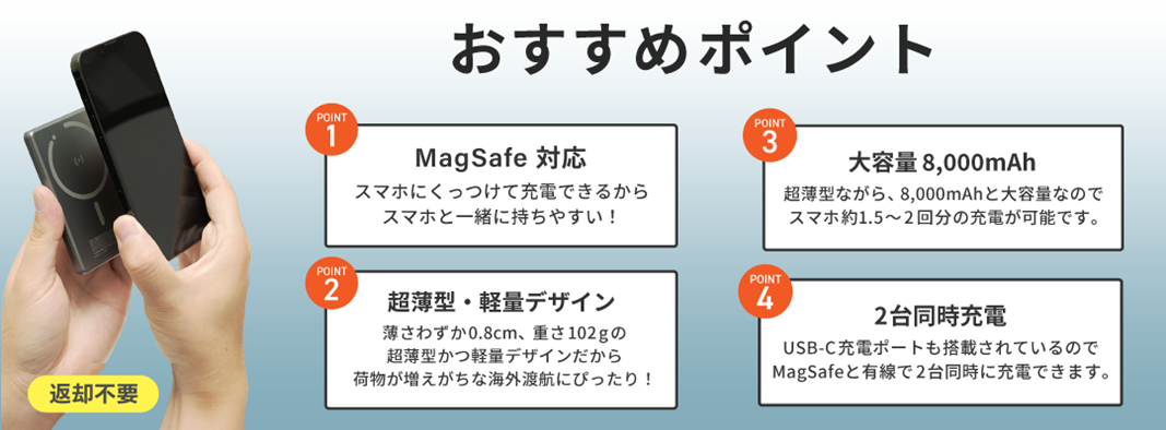 旅先でもかさばらないモバイルバッテリーが新登場!「グローバルWiFi®」が新オプション『【MagSafe対応】超薄型モバイルバッテリー』を提供開始。