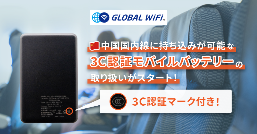 「グローバルWiFi®」モバイルバッテリーのレンタルオプションに中国『3C認証』取得製品を採用 ~中国国内線でも安心して持ち込み可能に~